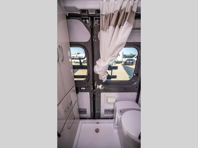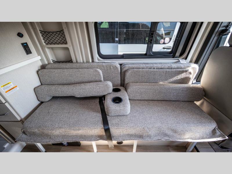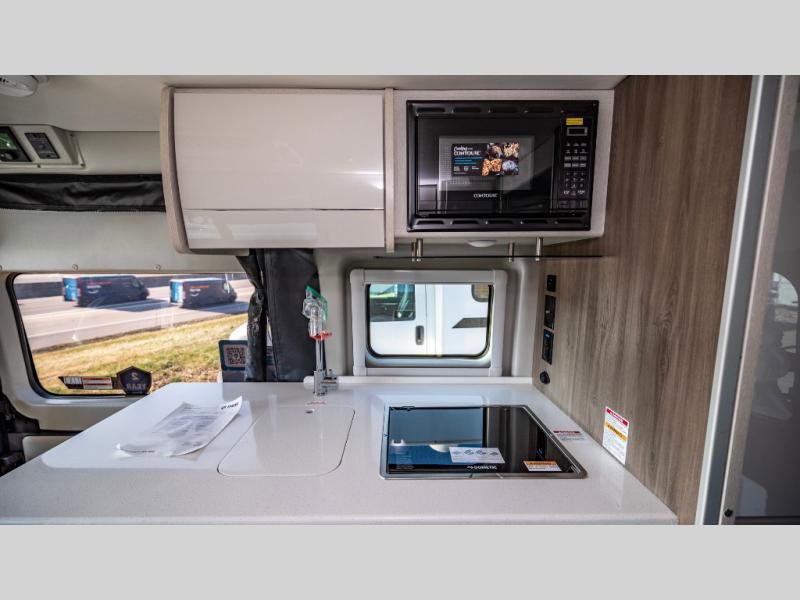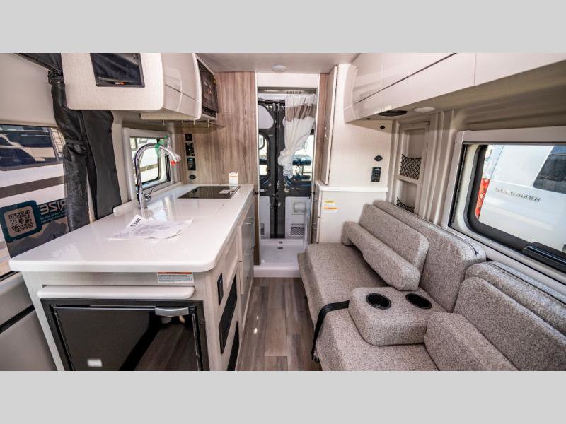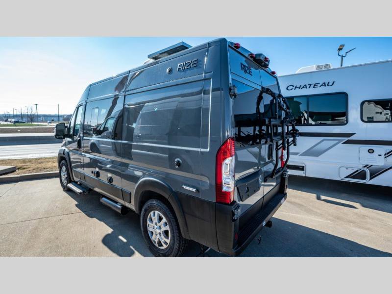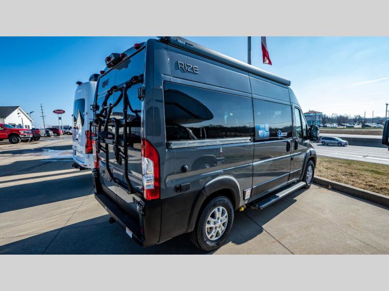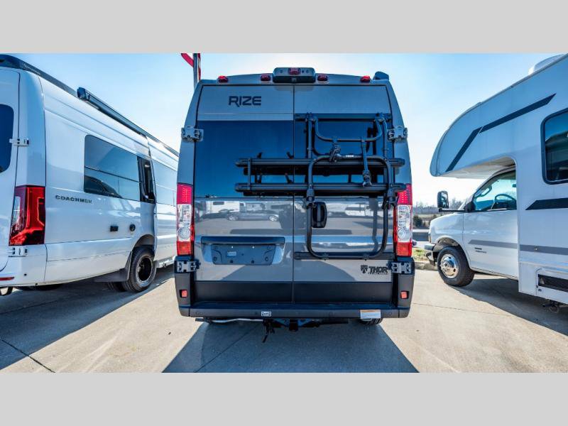 The Rize Class B gas motorhome by Thor Motor Coach allows you to experience the camping lifestyle in a compact RV packed with convenient features. There is a 3.6L Pentastar V6 engine and 276 HP to power your excursions, and the outdoor enthusiast will love the exterior sprayer. Each model includes residential vinyl flooring, Welformed interior wall panels, Euro-style upper cabinet doors, and cassette shades. You'll find solid surface countertops in the kitchen and a glass protective cover and task lighting above the cooktop to easily cook meals each day. The keyless entry system adds to the convenience found throughout these models, plus there is an exterior LP connection if you want to hook up your own grill!