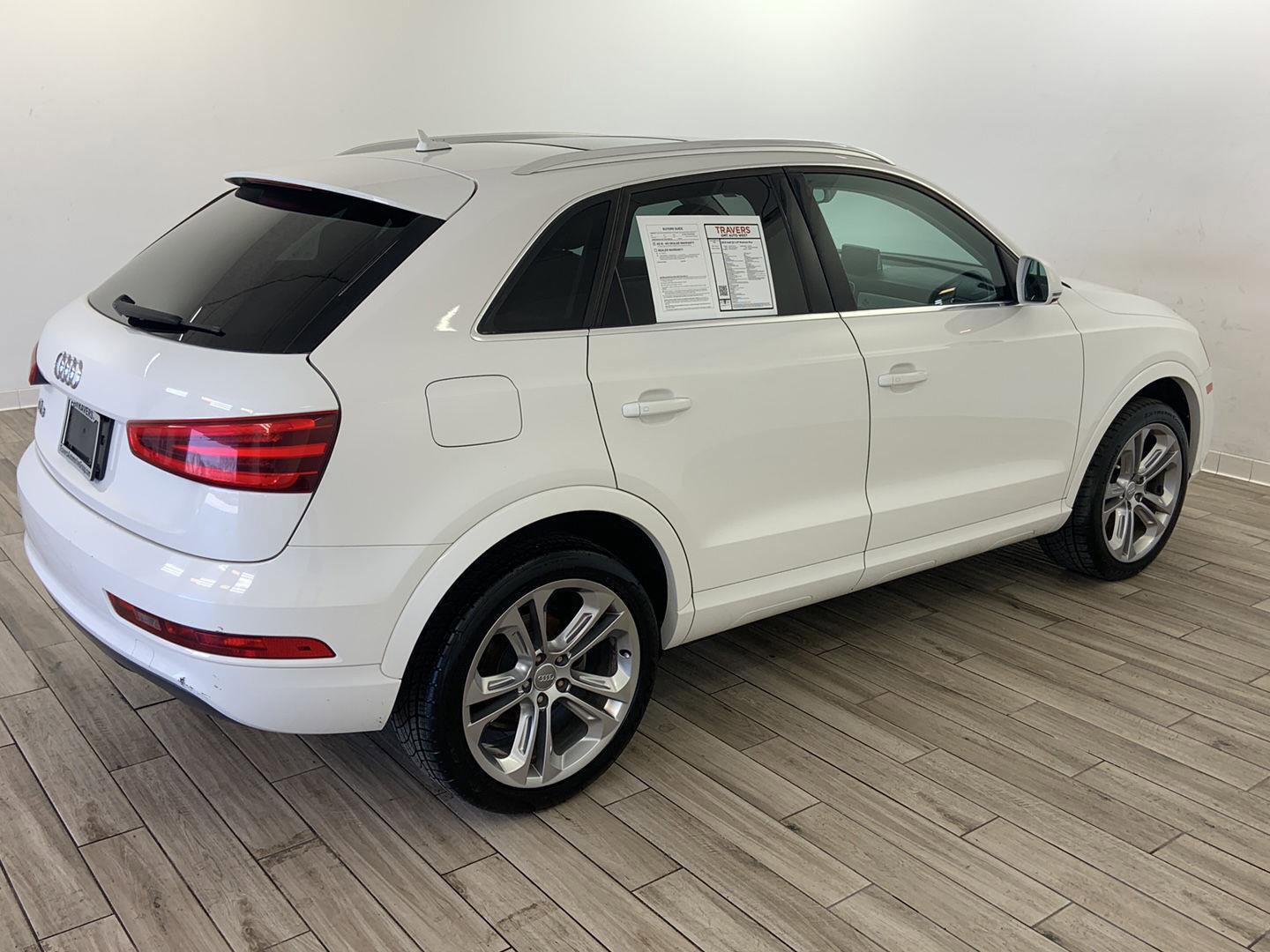 2015 Audi Q3 2.0T Premium Plus, comes in Glacier White Metallic exterior with Black interior with 105,094 miles and is Stock Number W9216A.