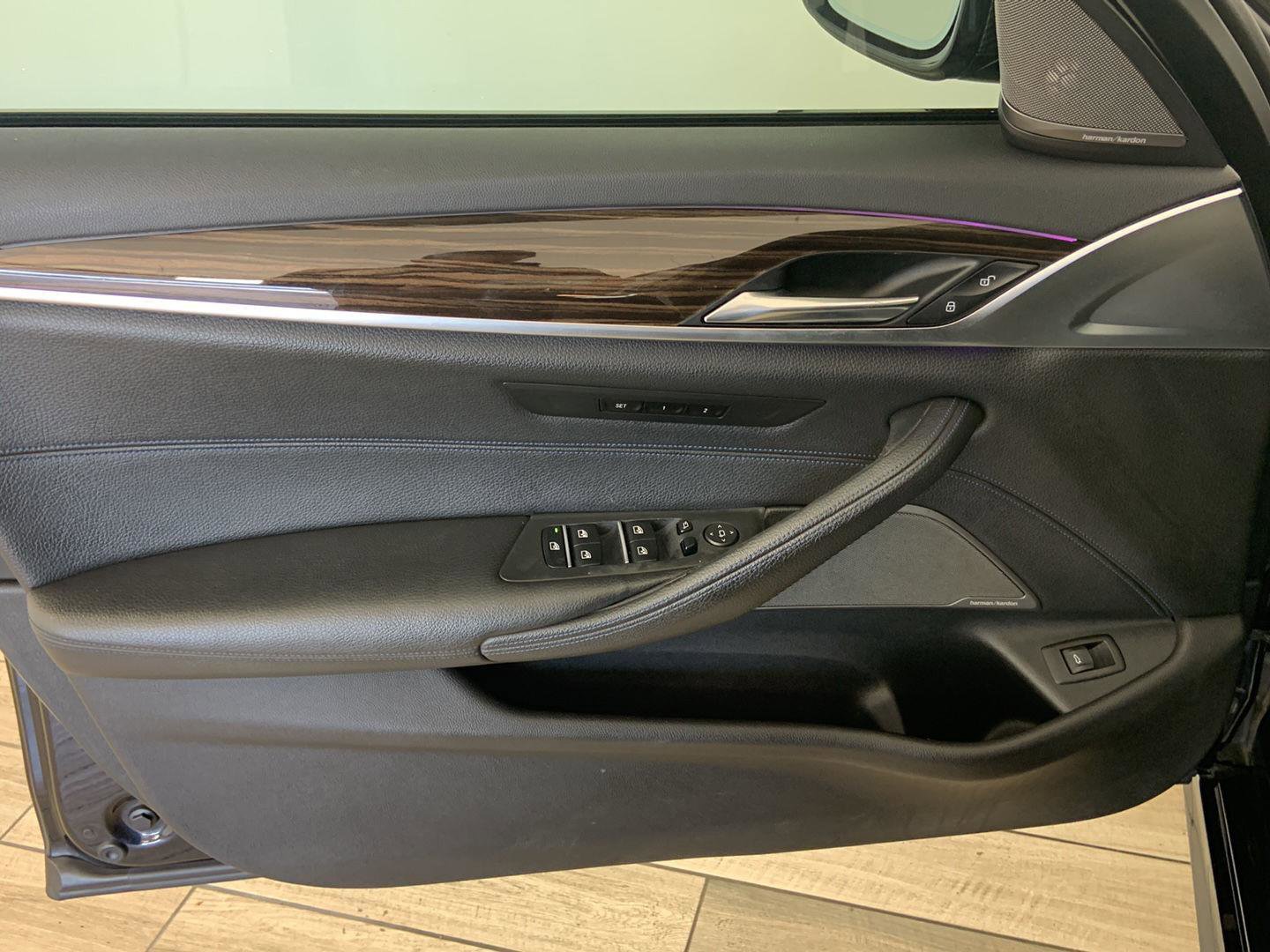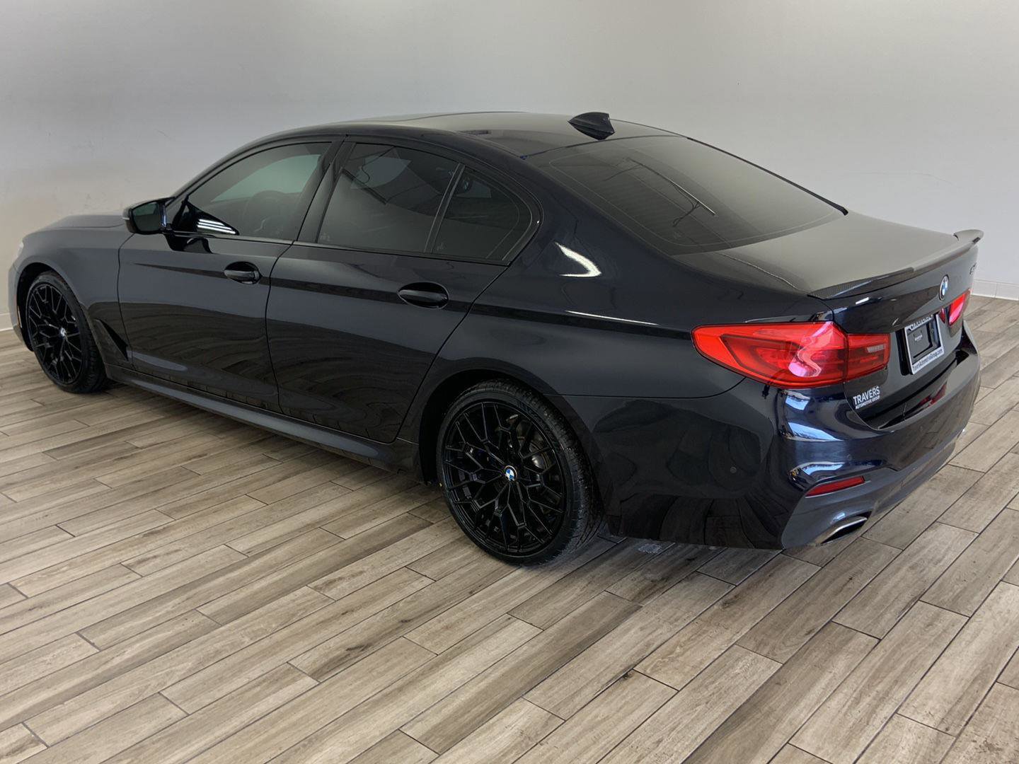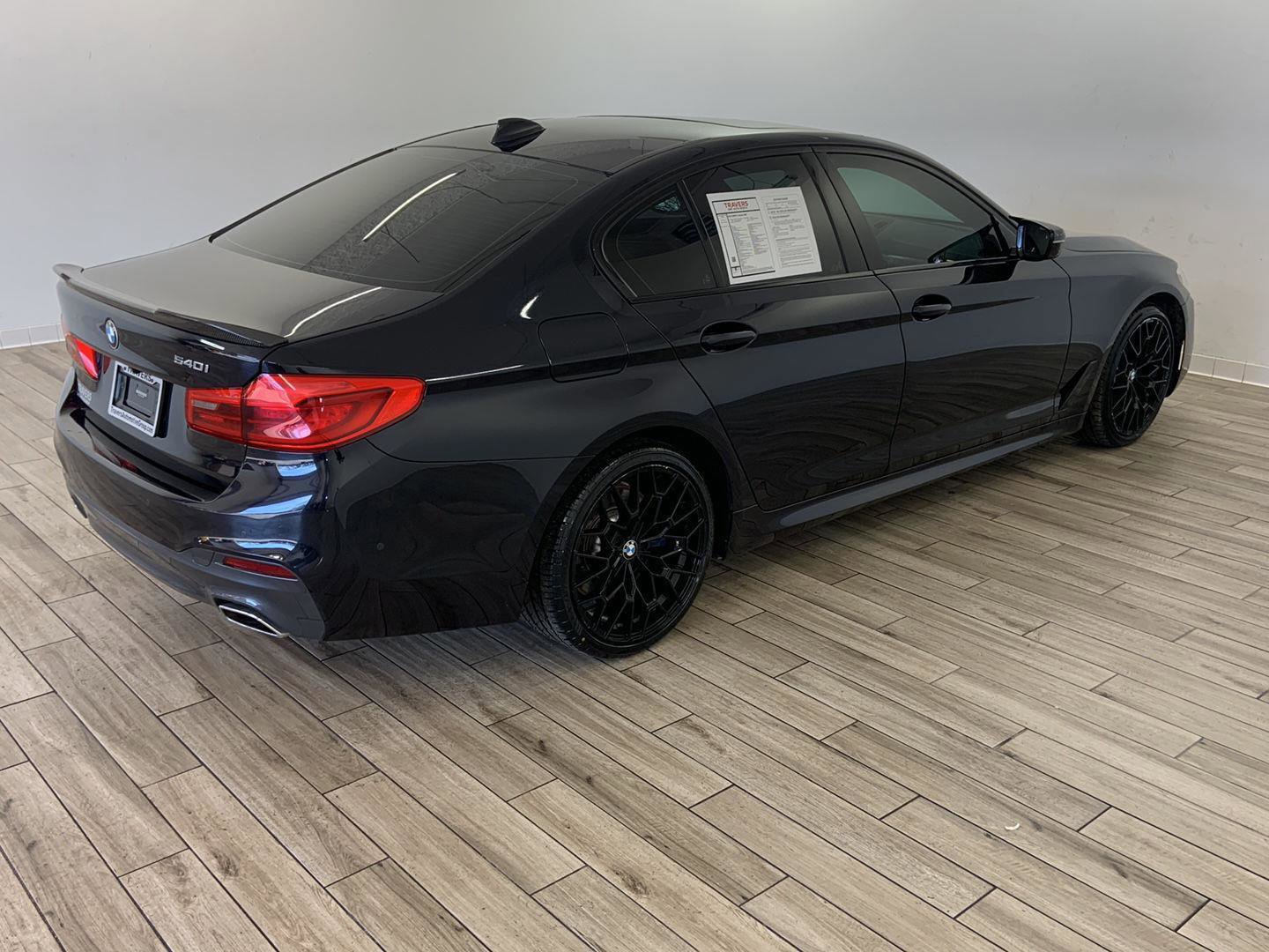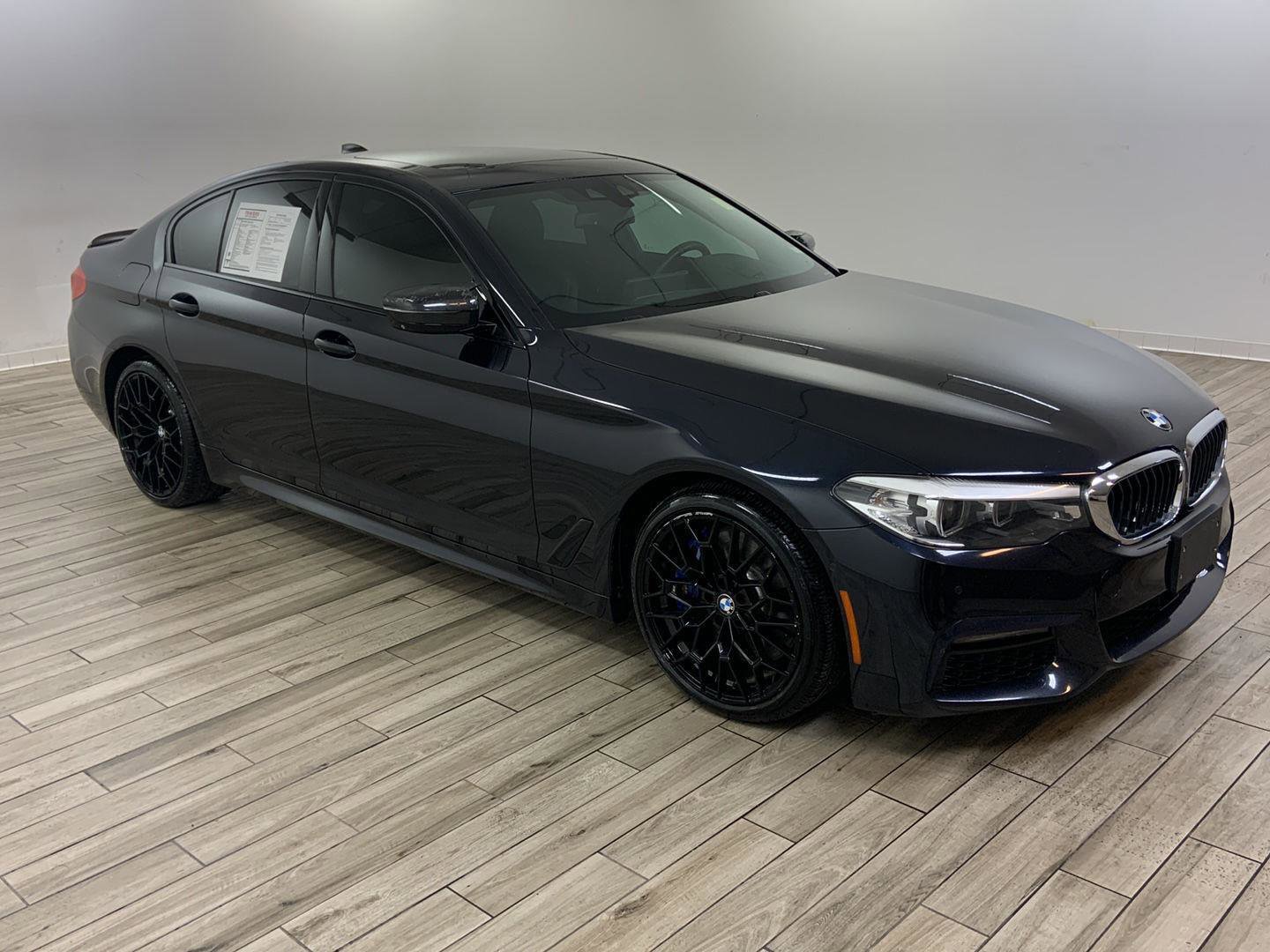 2019 BMW 5 Series 540i, comes in Carbon Black Metallic exterior with Black w/Blue interior with 82,800 miles and is Stock Number G17208.