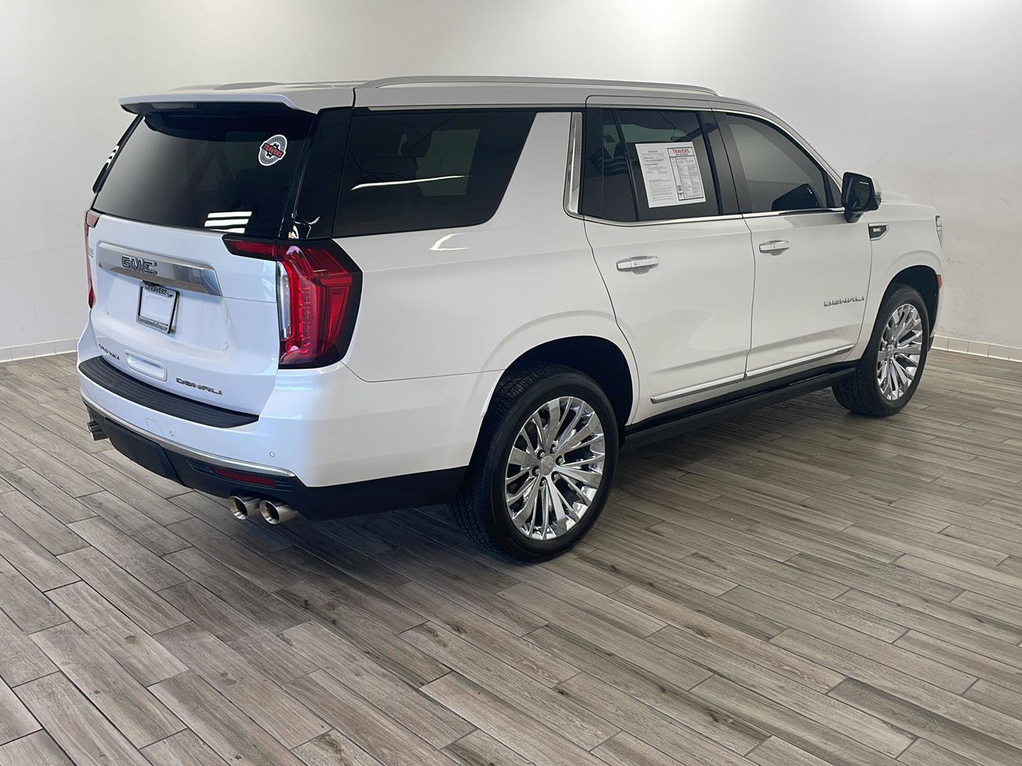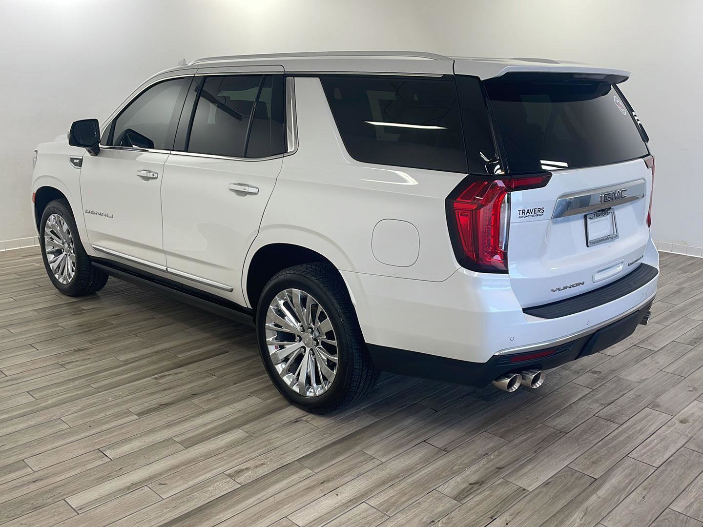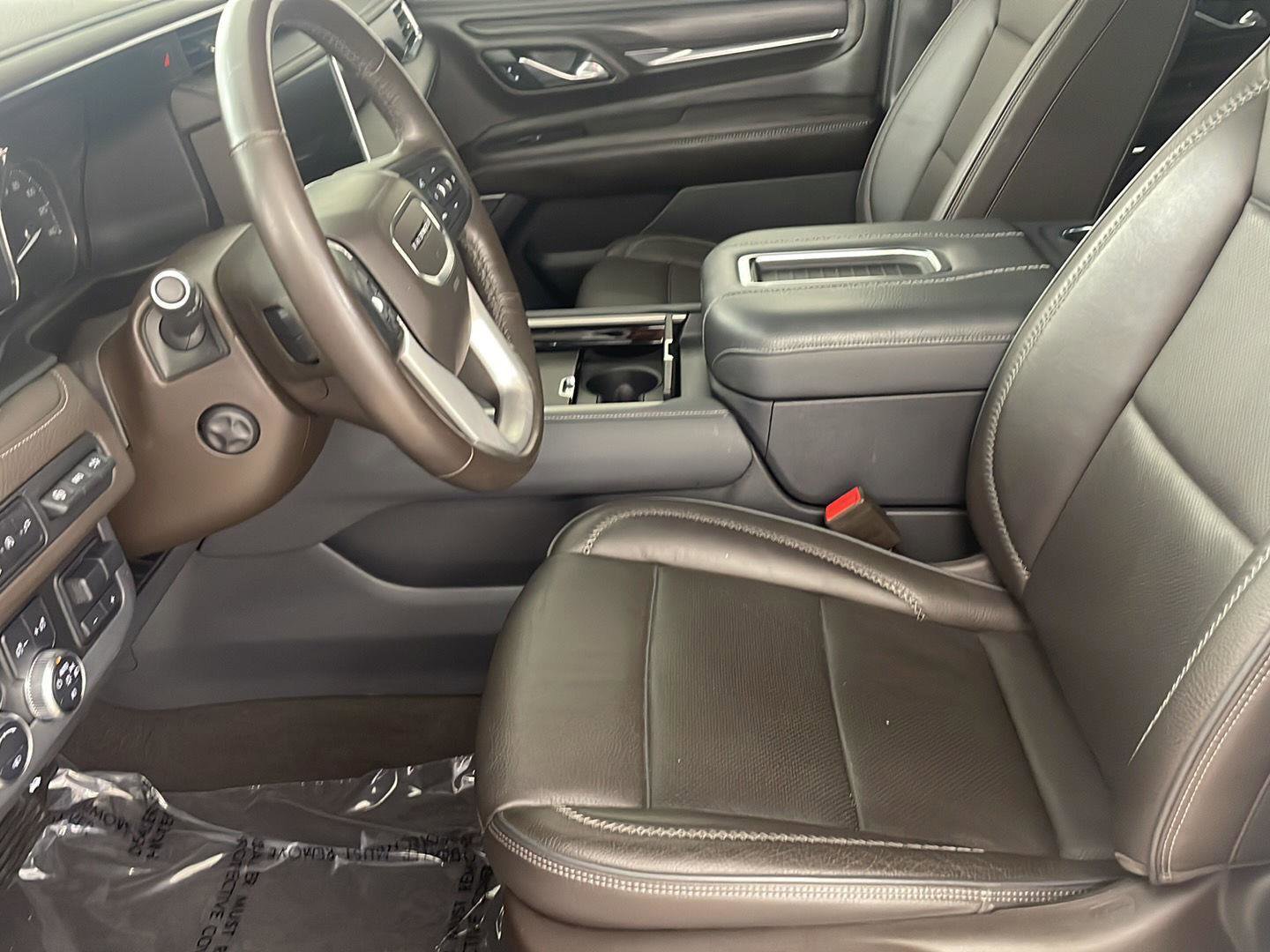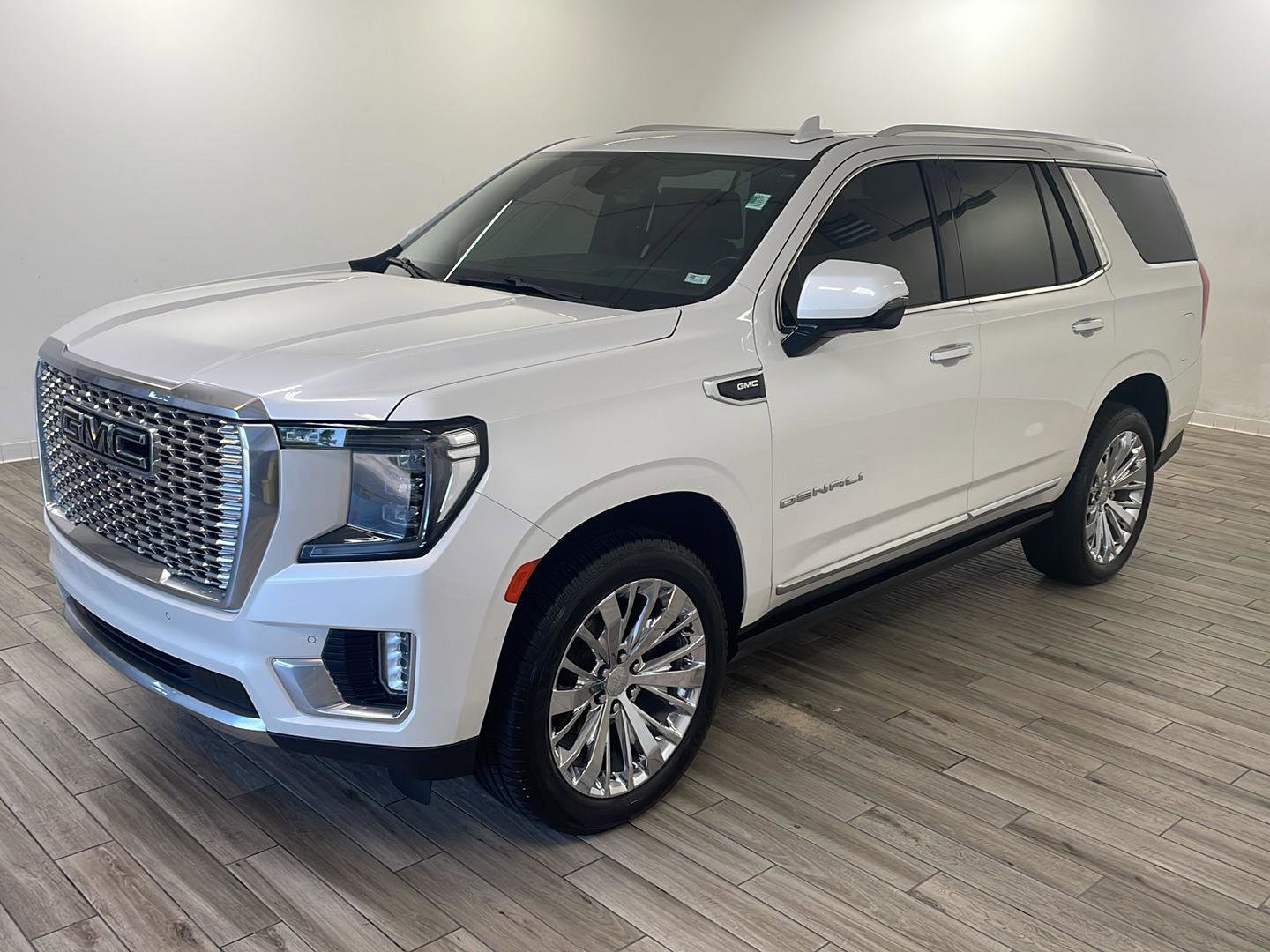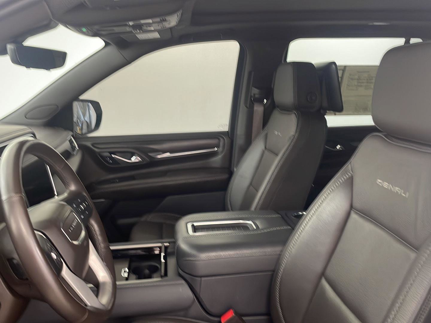 2021 GMC Yukon Denali, comes in White Frost Tricoat exterior with Dark Walnut/Very Dark Ash Gray interior with 71,988 miles and is Stock Number W9091.