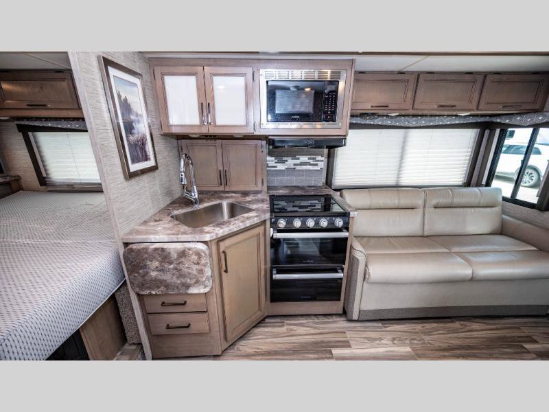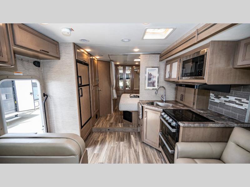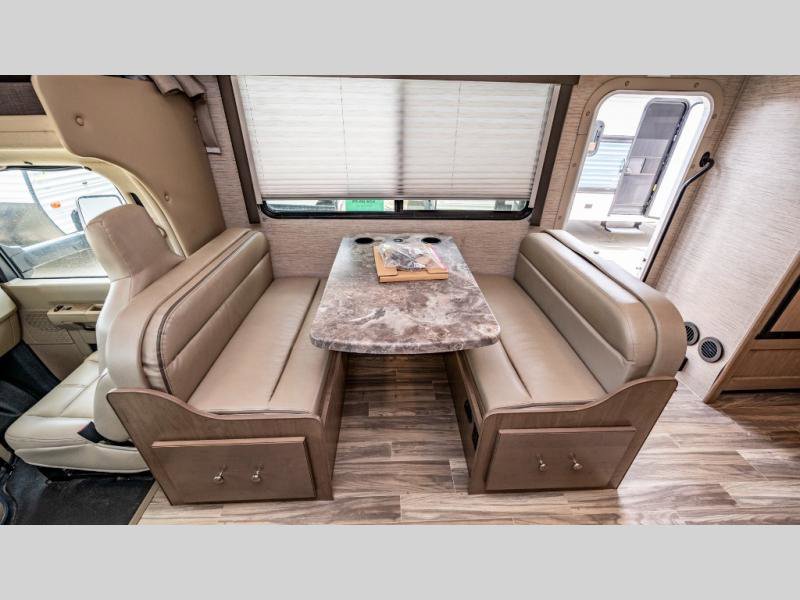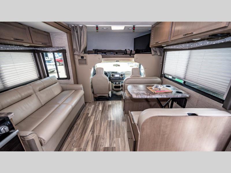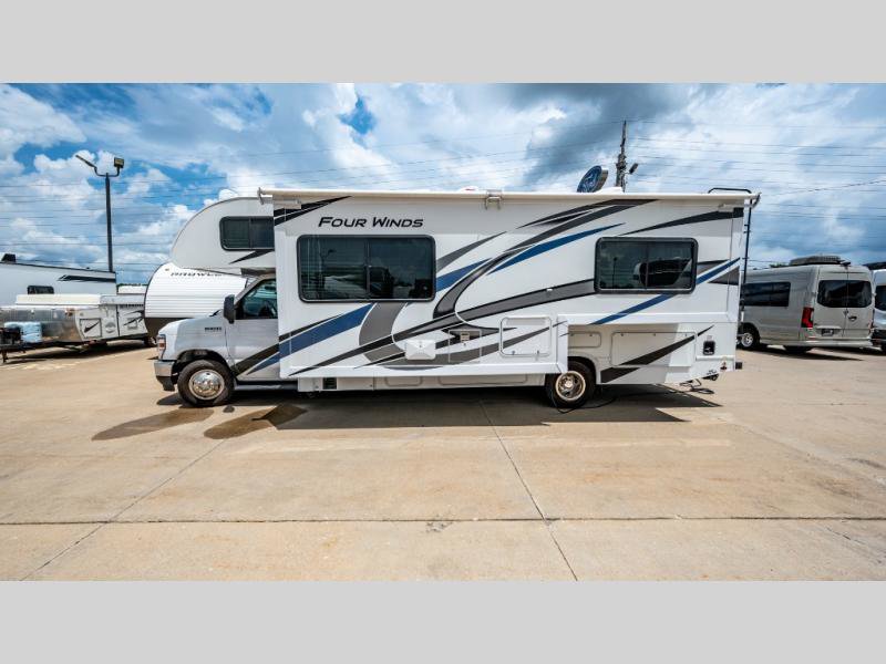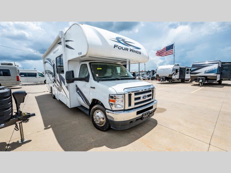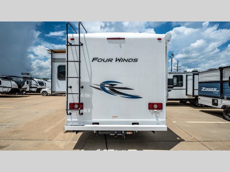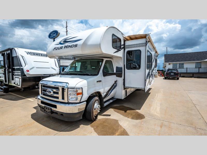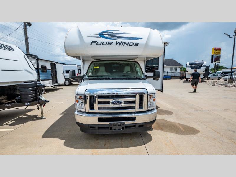 With any Four Winds Class C gas motorhome, you can travel in a trustworthy Ford E-Series chassis with 350HP. Each is built with welded sidewall cage construction and a welded tubular aluminum roof, a one-piece fiberglass cap, and includes a slick fiberglass exterior with graphics package for style and years of enjoyment on the open road. Inside, you will enjoy the well-equipped kitchen, the spacious bathroom, the sleeping accommodations and the Winegard ConnecT 2.0 WiFi/4G/TV antenna that allows you to stay connected. With several floorplans to choose from and options to add, you will surely find one that fits your family's needs or your friend's approval. Choose today!