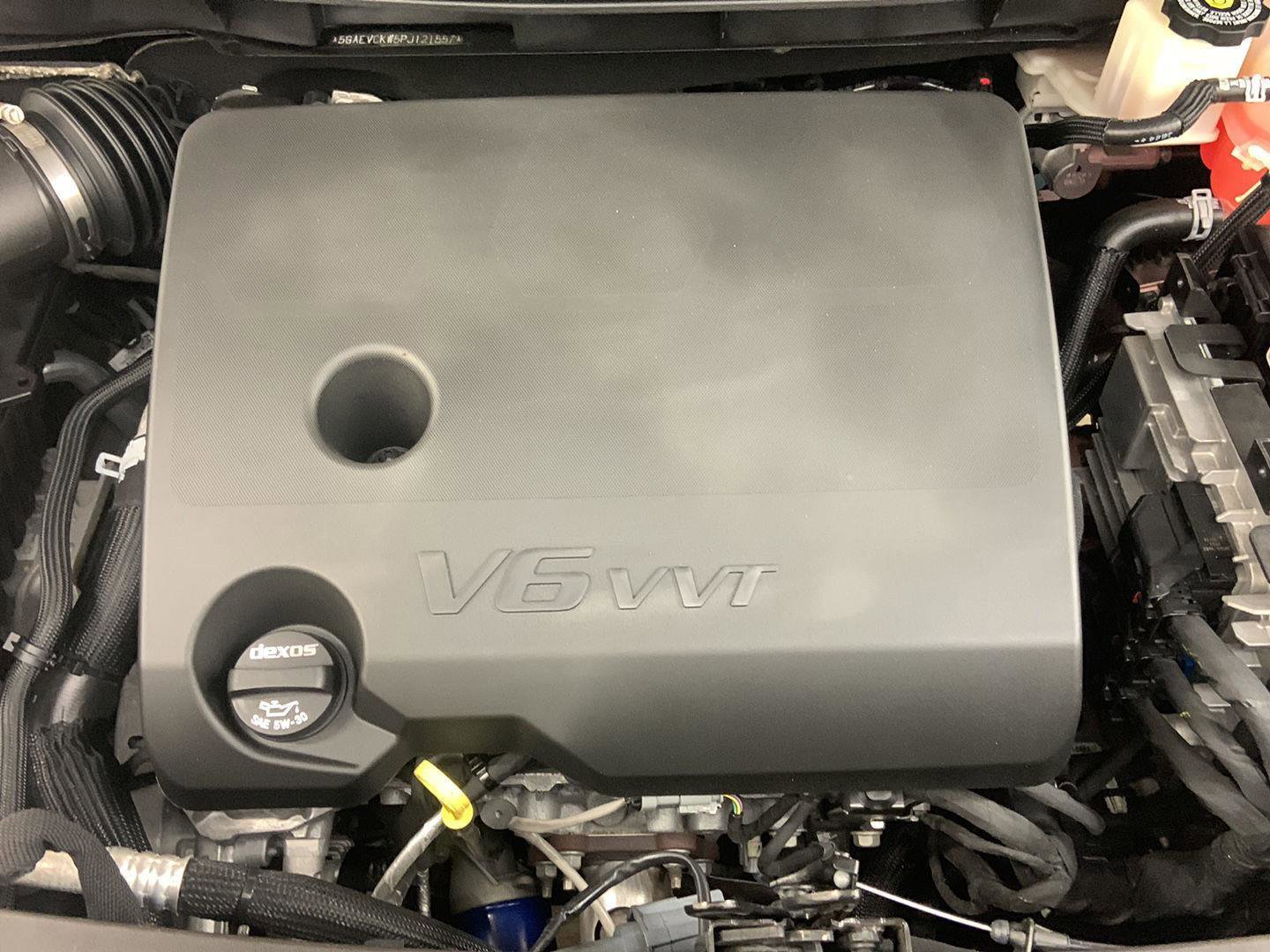 - The vehicle is equipped with a camera that displays an image of the area behind the vehicle on an interior display.