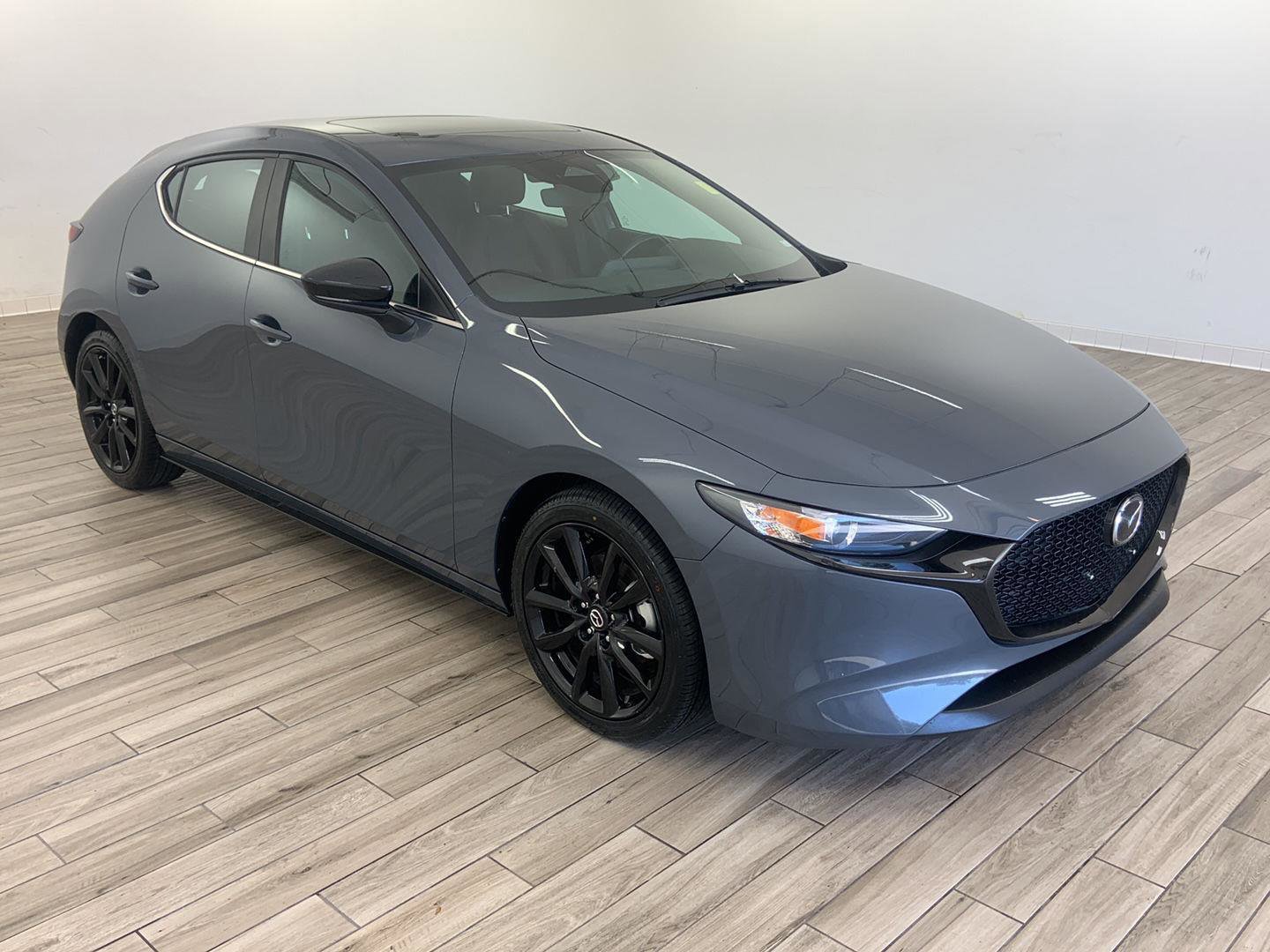 2024 Mazda Mazda3 Hatchback 2.5 S Carbon Edition, comes in Polymetal Gray Metallic exterior with Red interior with 35,405 miles and is Stock Number G17242.