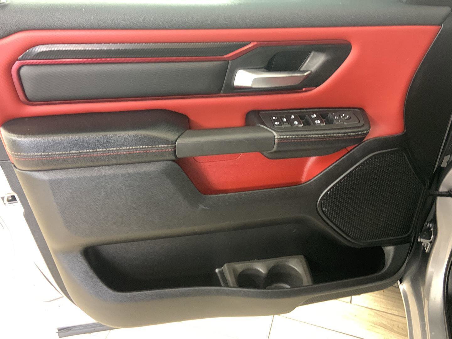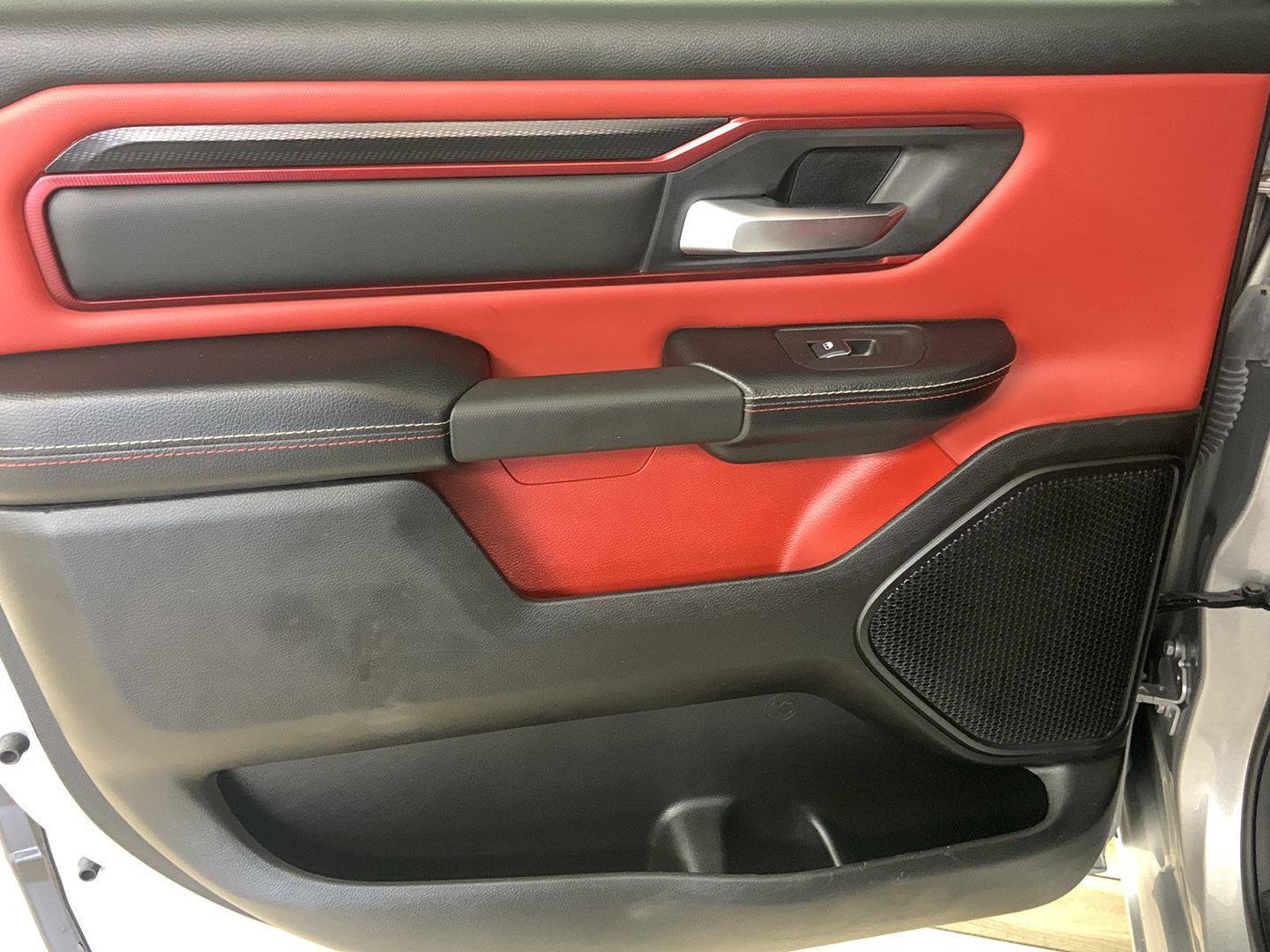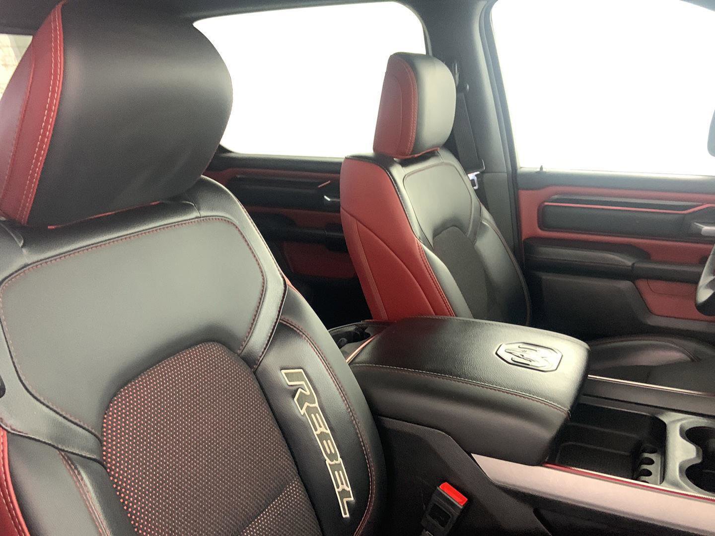 2025 Ram 1500 Rebel, comes in Billet Silver Metallic Clearcoat exterior with Red/Black interior with 39,630 miles and is Stock Number W9399.