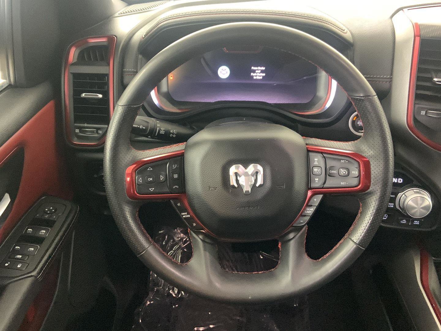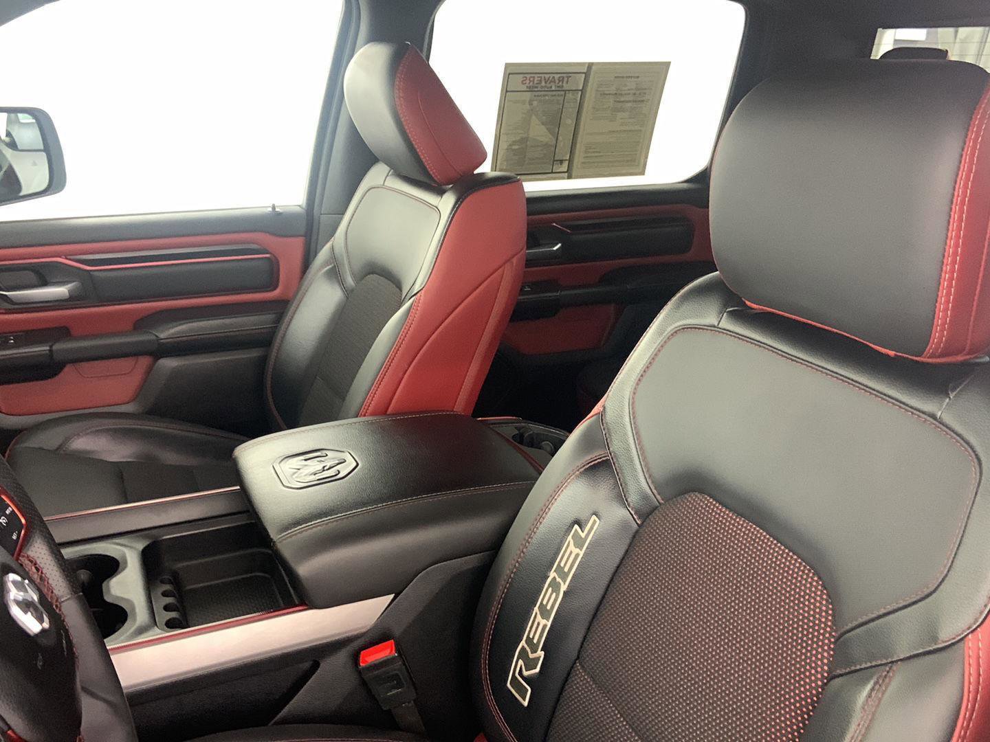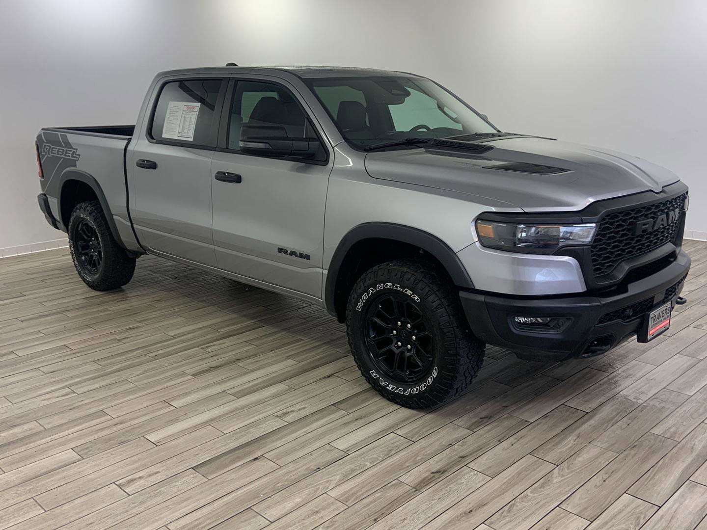 2025 Ram 1500 Rebel, comes in Billet Silver Metallic Clearcoat exterior with Red/Black interior with 39,630 miles and is Stock Number W9399.