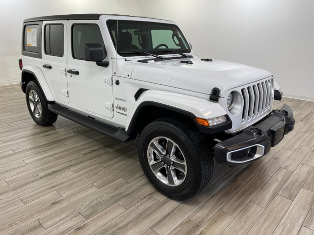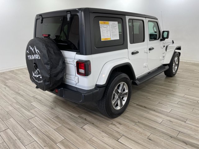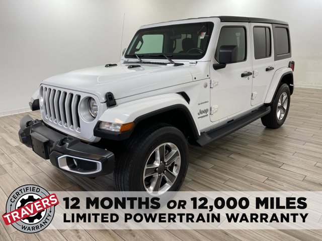 2020 Jeep Wrangler Unlimited Sahara, comes in Bright White Clearcoat exterior with Black interior with 43923 miles and is Stock Number H1427.