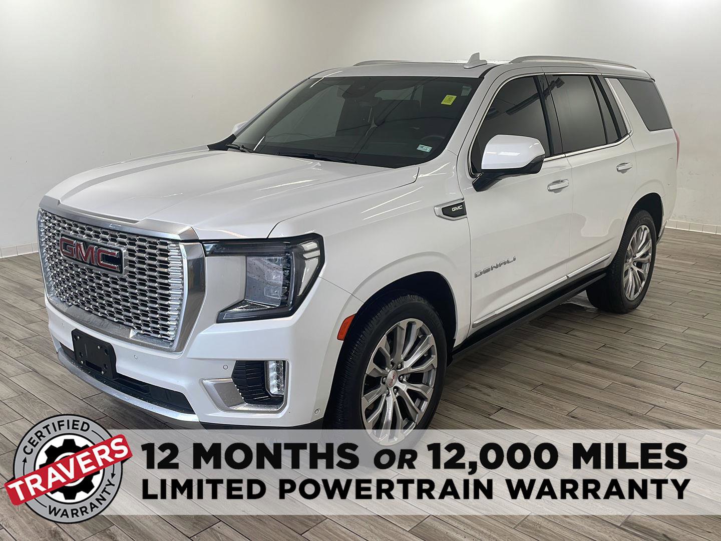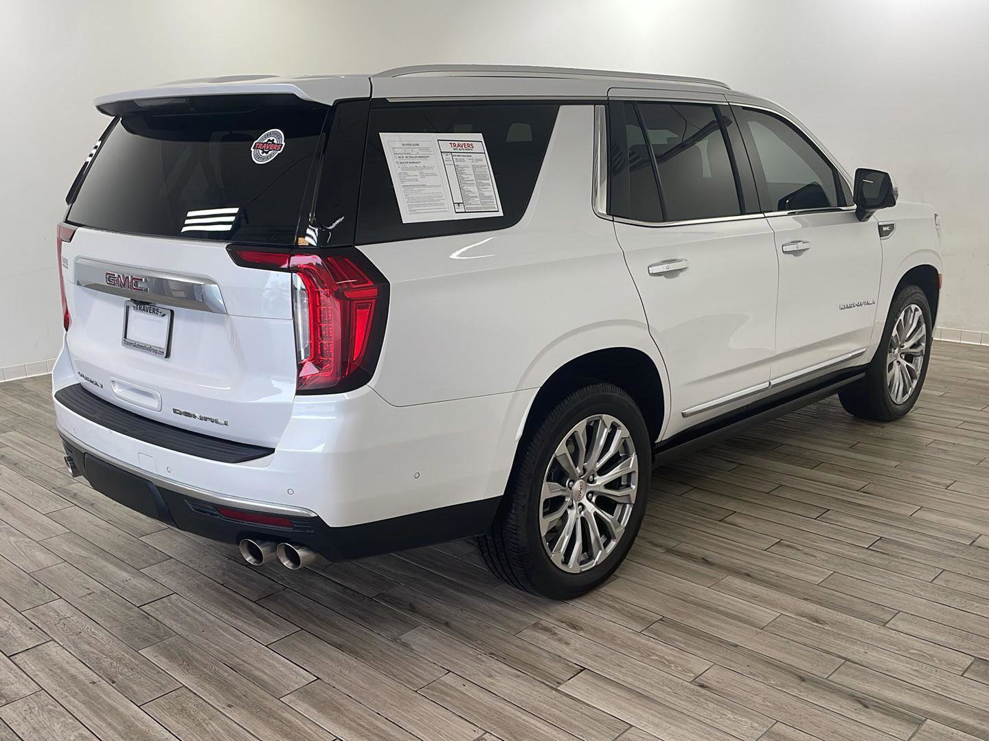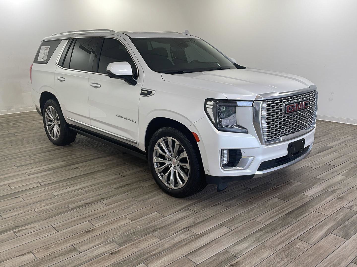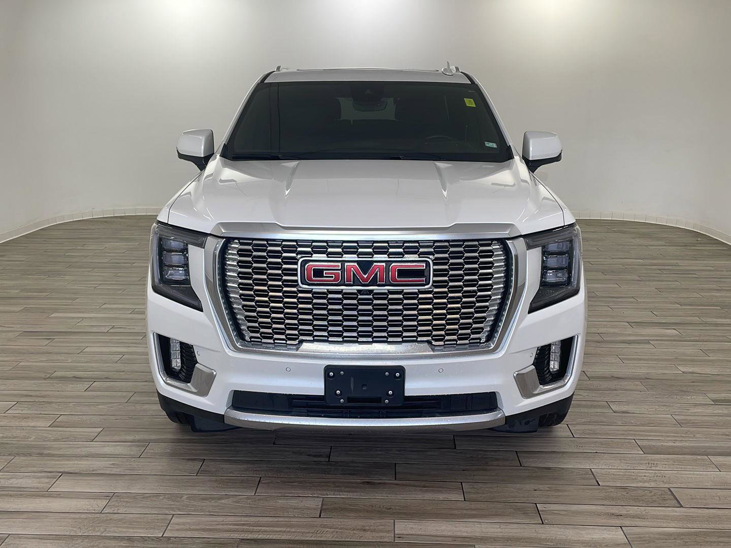 2023 GMC Yukon Denali, comes in White Frost Tricoat exterior with Dark Walnut/Very Dark Ash Gray interior with 60854 miles and is Stock Number G17068.